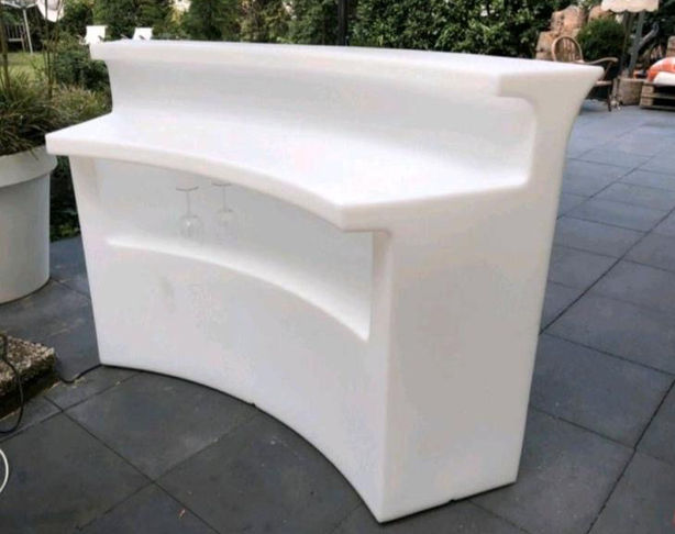 Unsere Leuchtbar sorgt dank LED-Beleuchtung für stilvolle Atmosphäre - drinnen wie draußen.